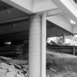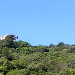 Localizado em um terreno de serra, o projeto tem sua concepção estrutural e espacial baseada diretamente nos parâmetros da topografia local, cuja alta declividade, marcante característica da região, acabou por nortear as decisões referentes a quantidade de pavimentos e distribuição interna do ambientes, além de instigar a solução estrutural adotada, que preza pela construção de plataformas aéreas.